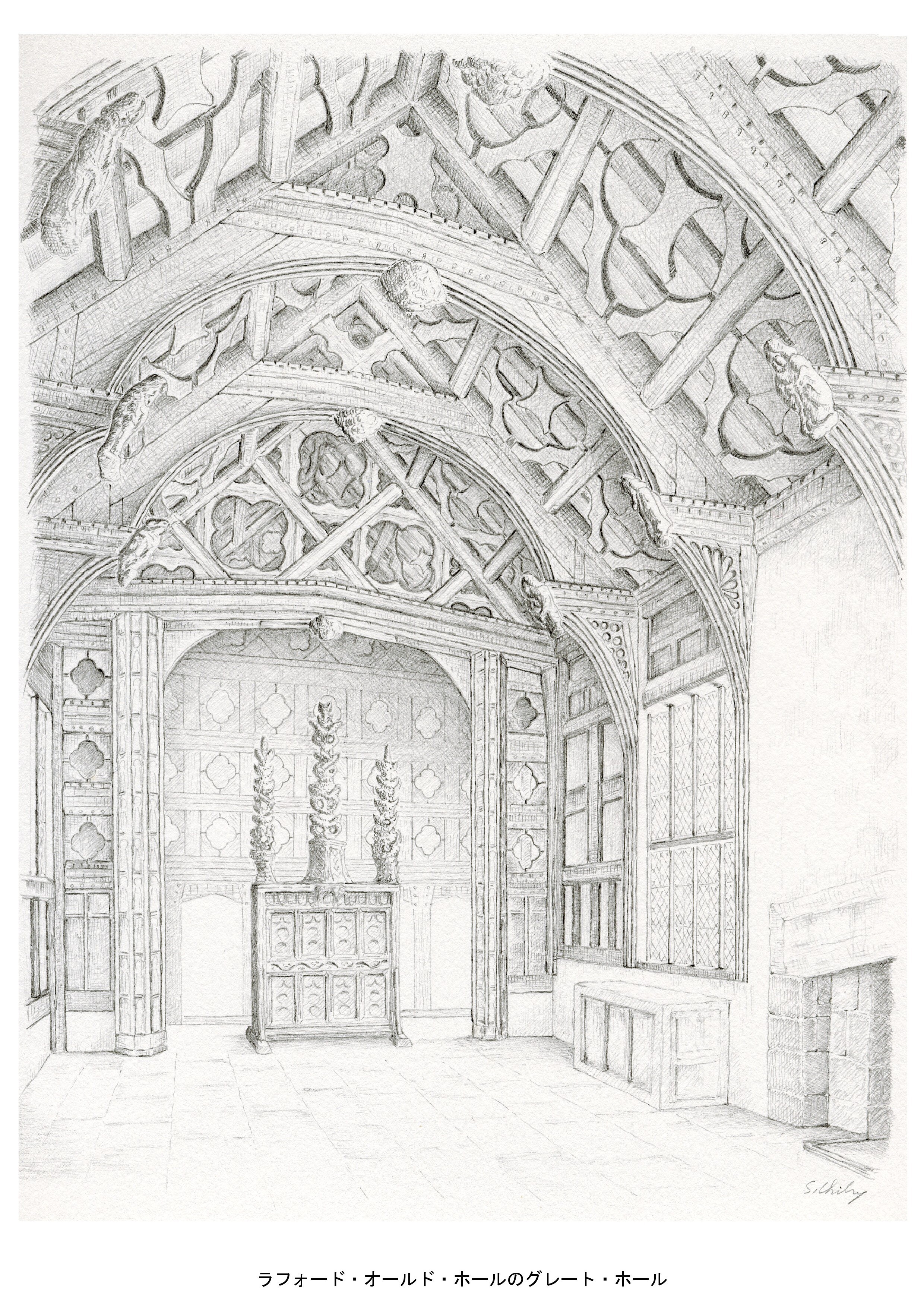 マンチェスターの西北西に40kmほど行ったところ、ランカシャーのラフォードという村に、ラフォード・オールド・ホールというマナー・ハウスがある。ここのグレート・ホール(大広間)は、15世紀の初期に建てられたものであるが、イギリスの木造建築の最高傑作といわれている。