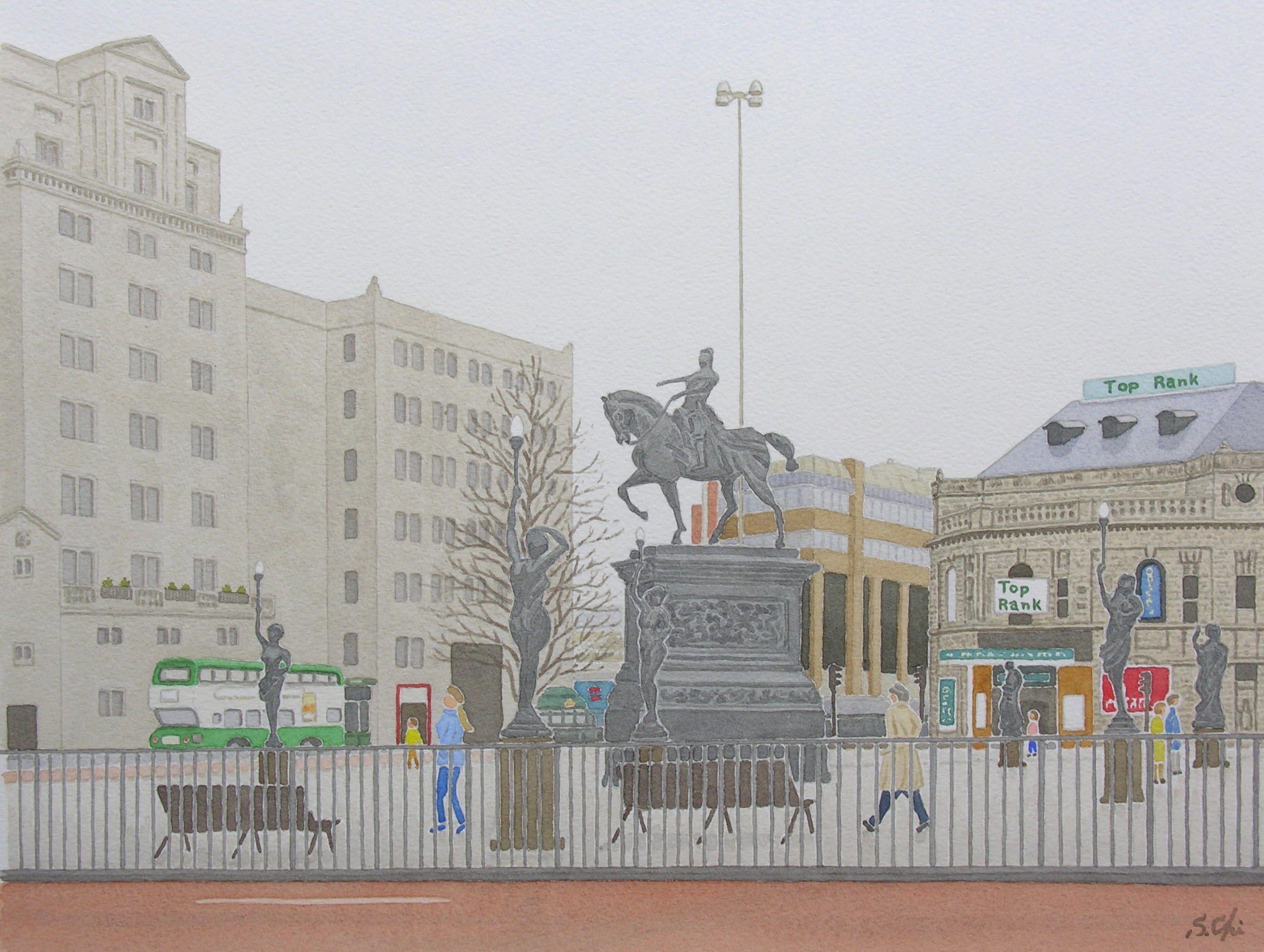 あとになってもうひとり出迎えてくれた人物がいることを知った。駅前のシティー・スクエアーに立つ、14世紀の英雄で黒太子の異名をもつ、皇太子エドワードである。馬上の黒太子は、甲冑を身につけて胸を張り、まさに合戦におもむかんとする勇ましい姿をしている。めざすはフランスか。