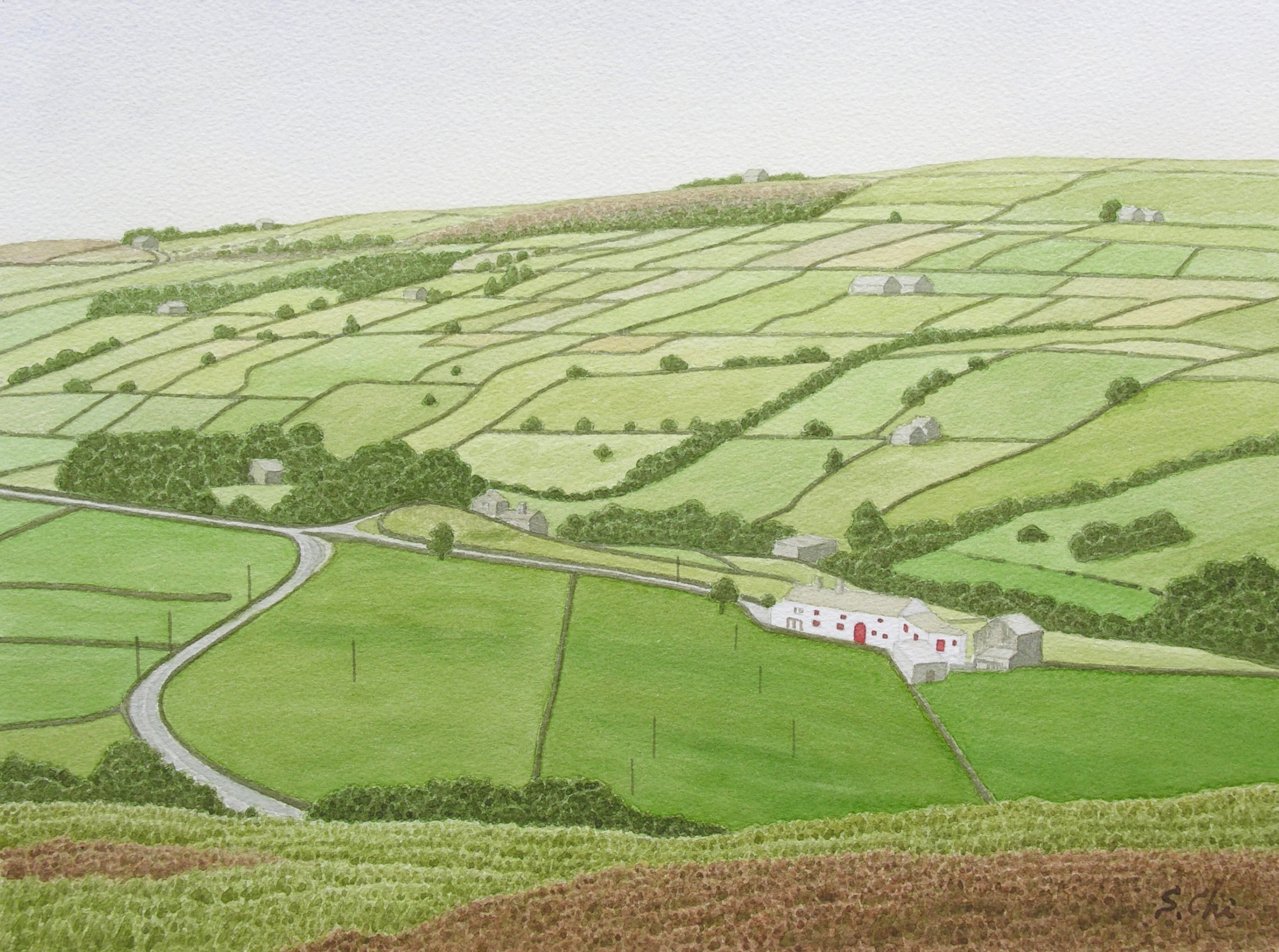 水彩画の手前がホワースの村で、向こう側の丘がオークワース・ムーアである。