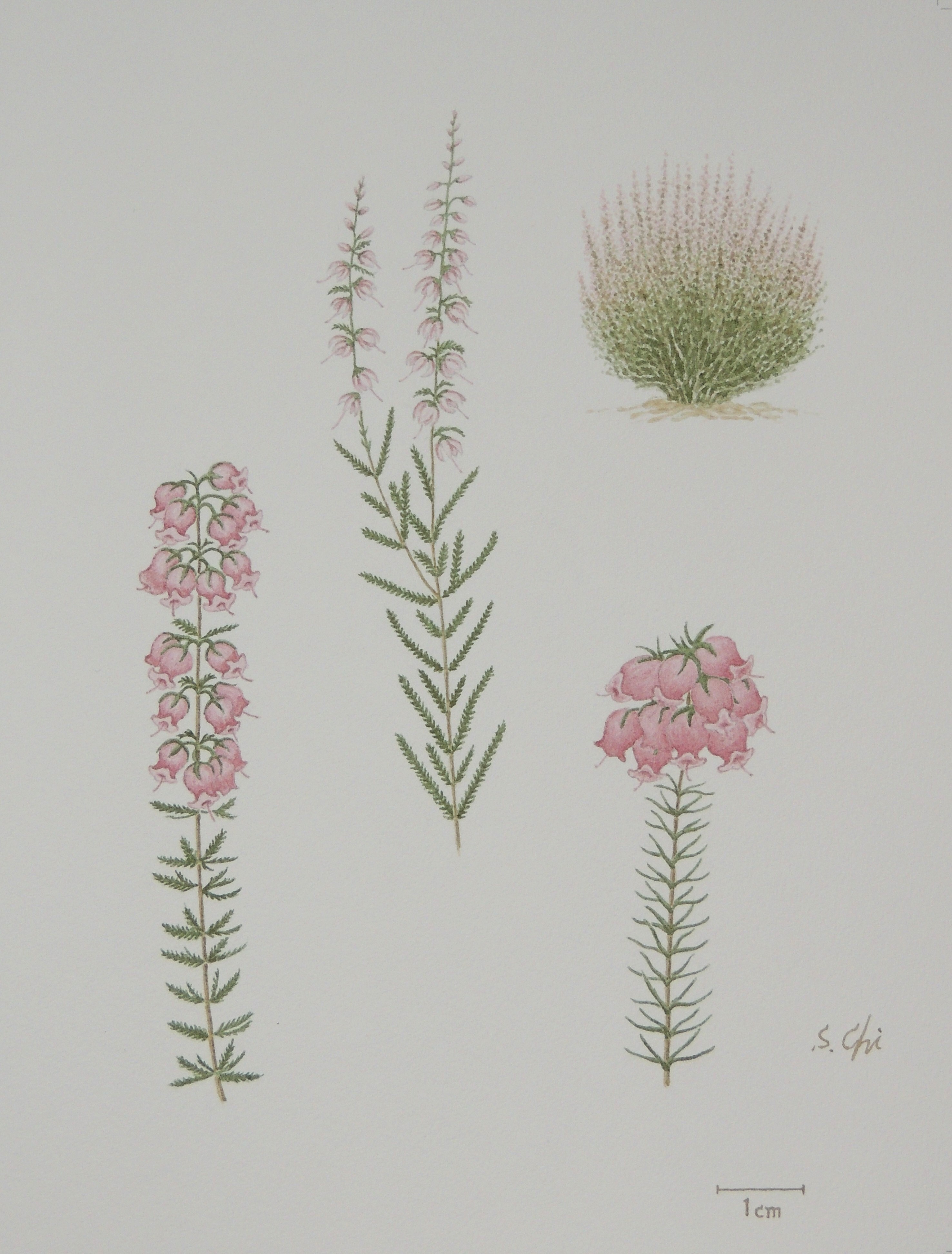 (left: bell heather, centre: heather, right: cross-leaved heath)