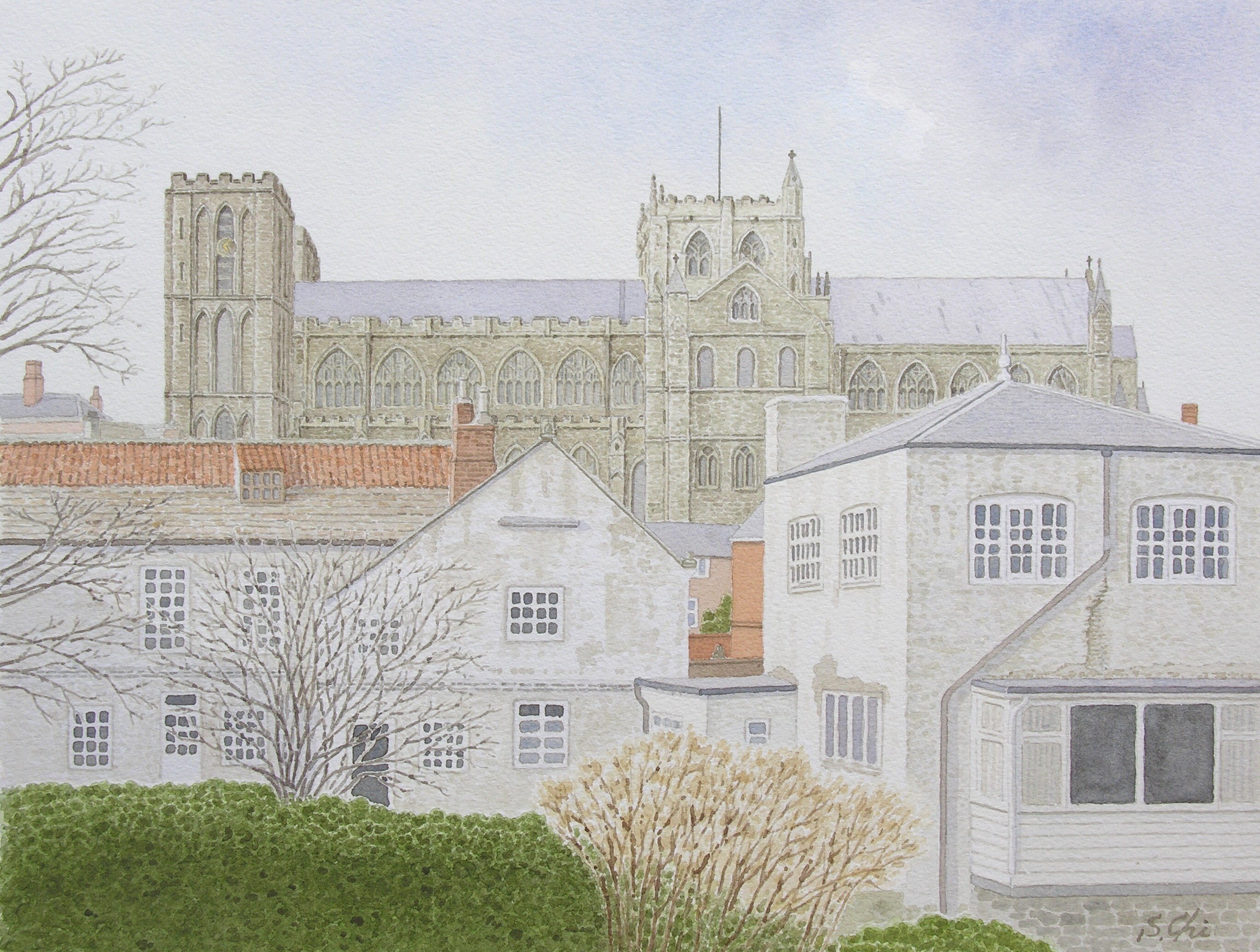 この水彩画は、大聖堂を南側から眺めたところを描いたものである。