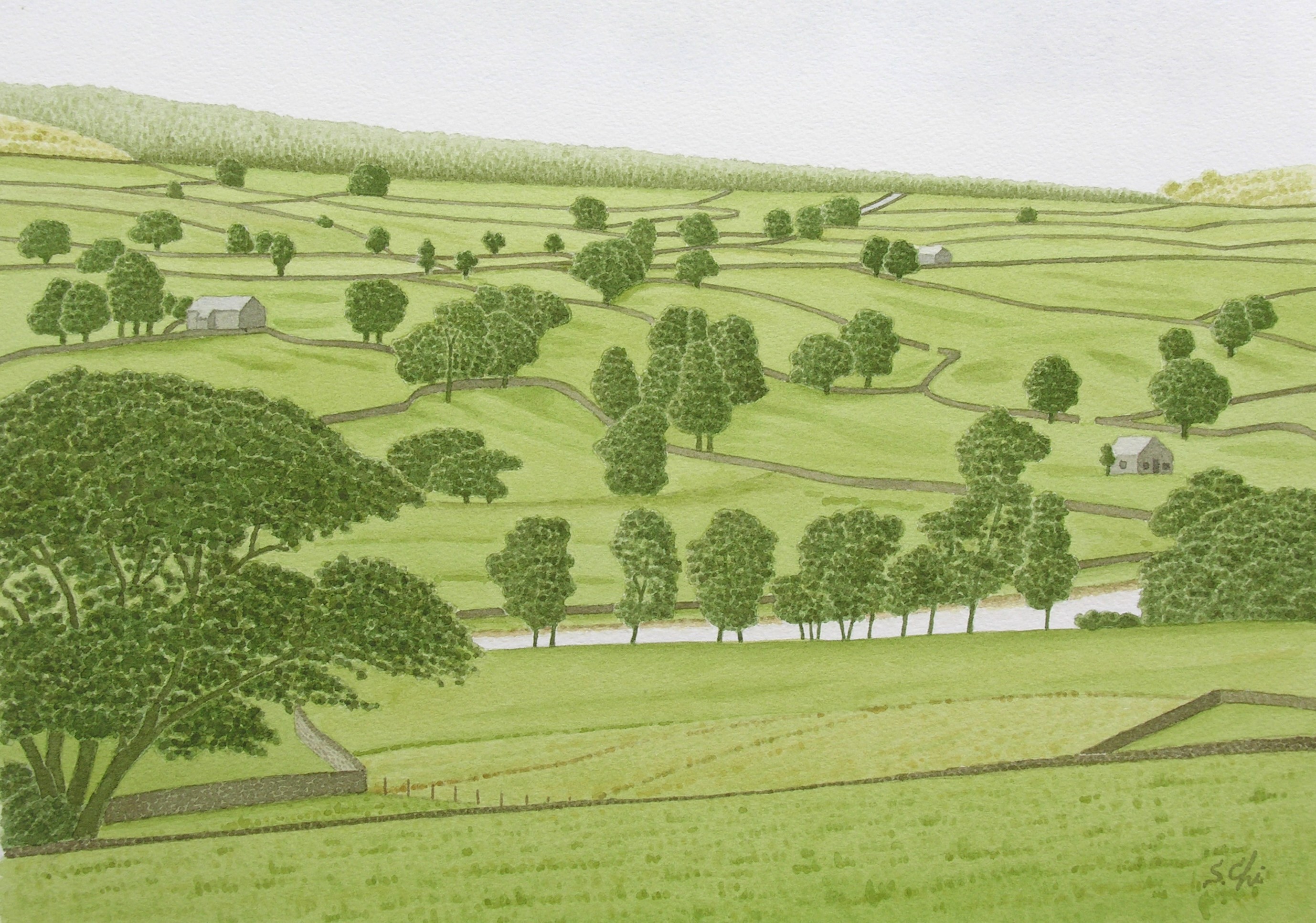 この水彩画のなかを左から右へと流れているのが、ウォーフ川である。