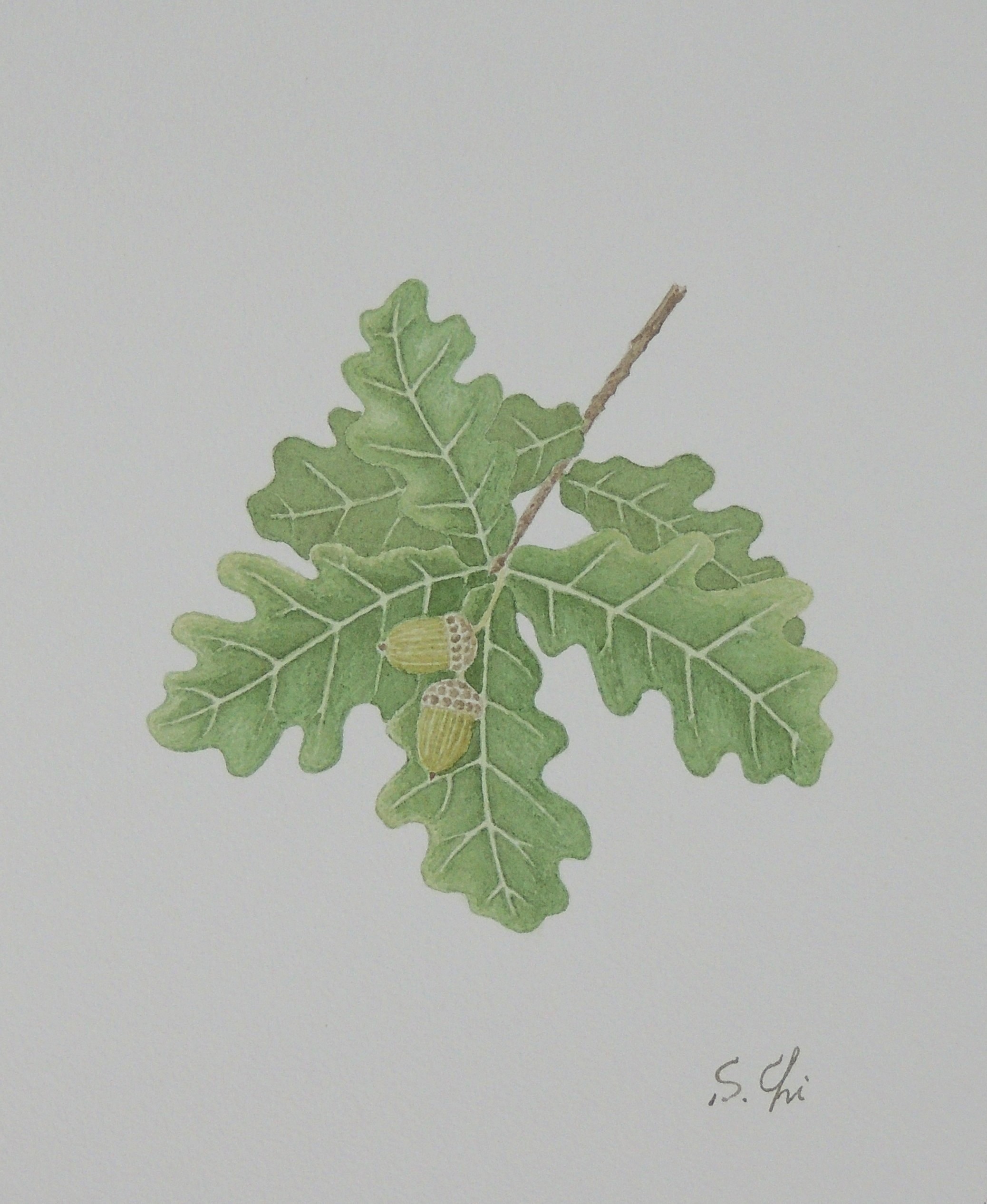 オークの葉とそのドングリ(Leaves and acorns of oak)