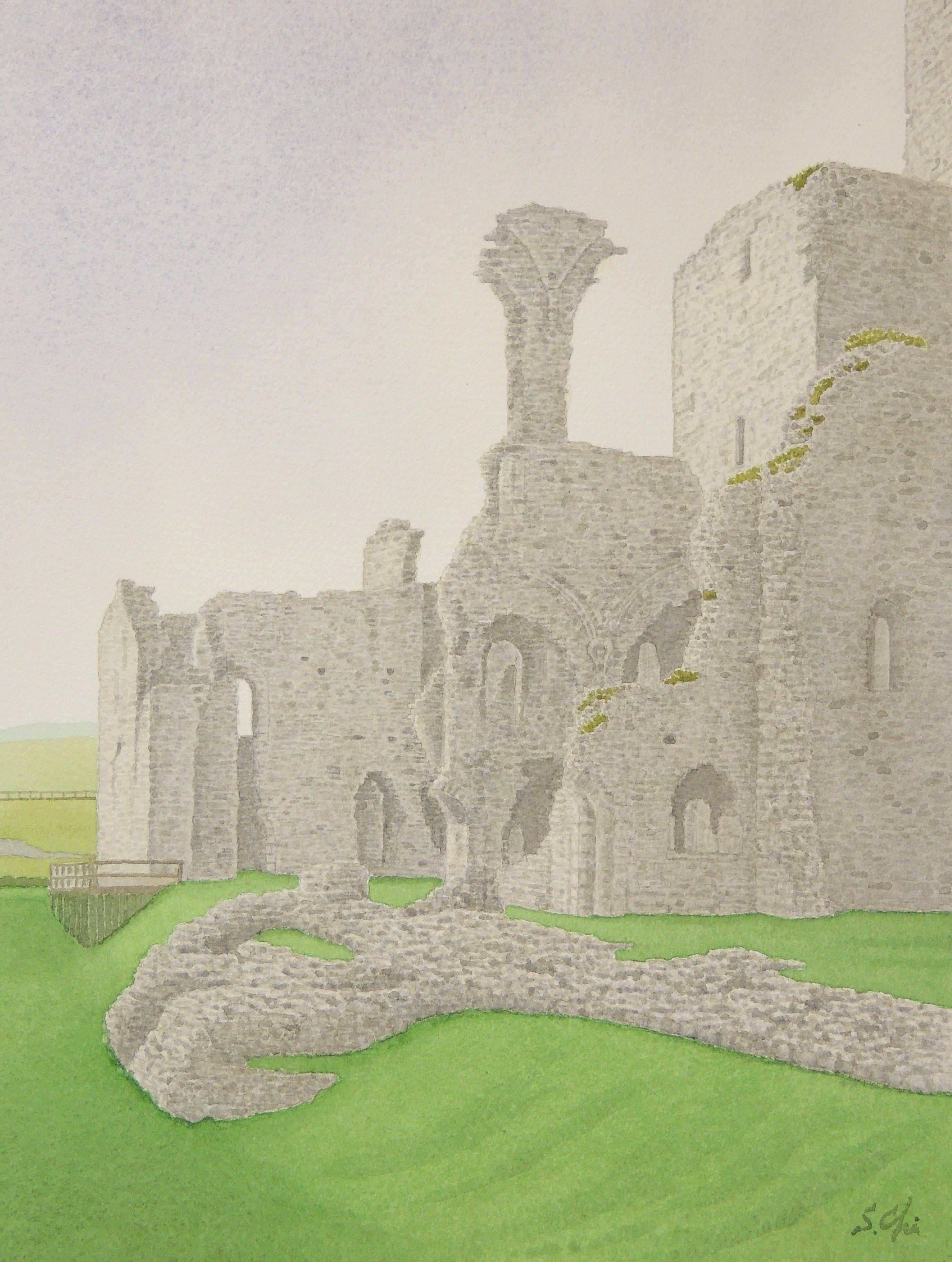 水彩画は、南側から見たミドゥラム城を描いたものである。