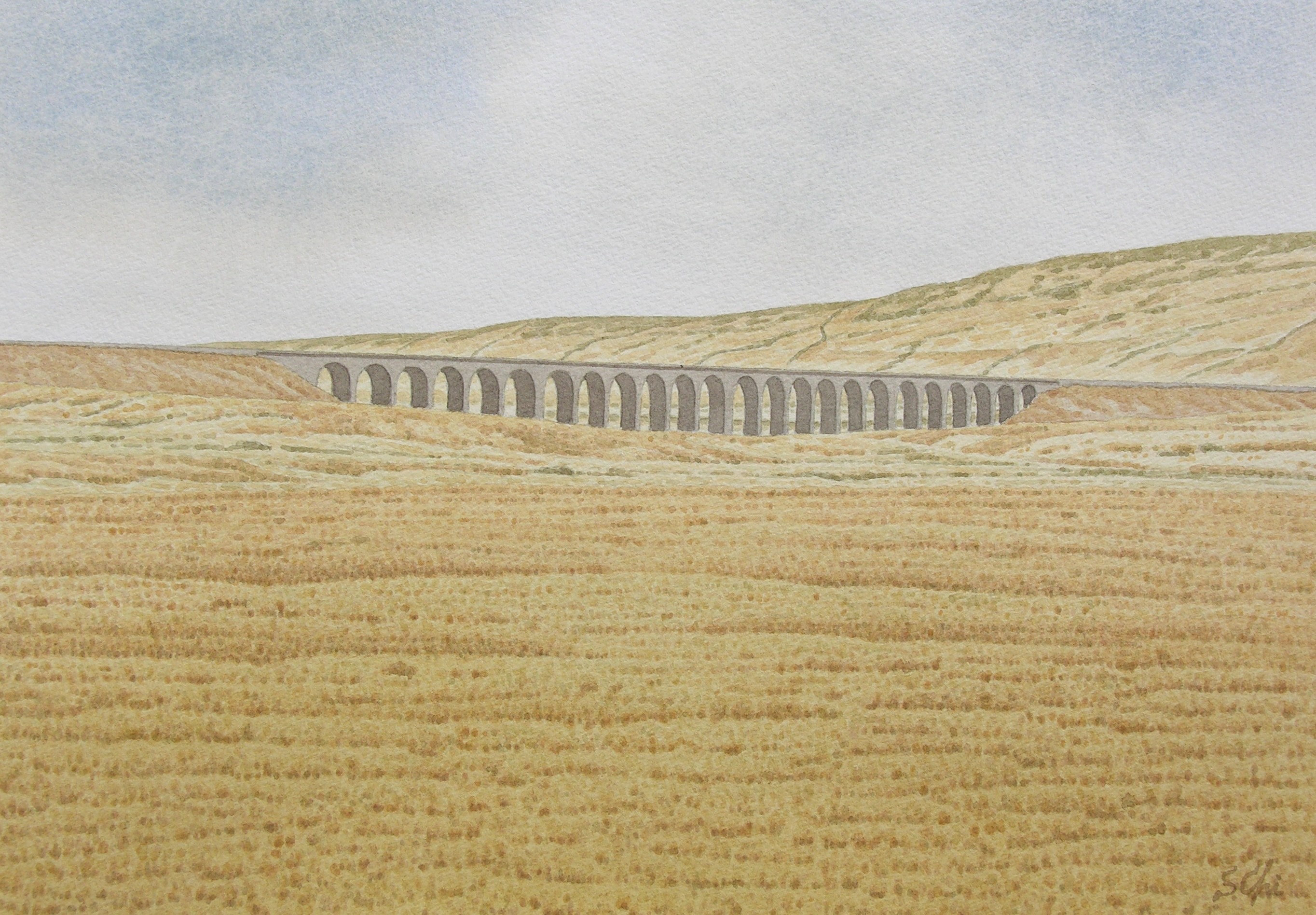 この水彩画でヴァイアダクトの奥(西側)に見えるのが、スリー・ピークスの一つでカンブリアとの州境にあるウェアンサイドである。この丘のような山は、ヨークシャーの最高峰で、標高が約736mある。その向こう側は、カンブリア州である。