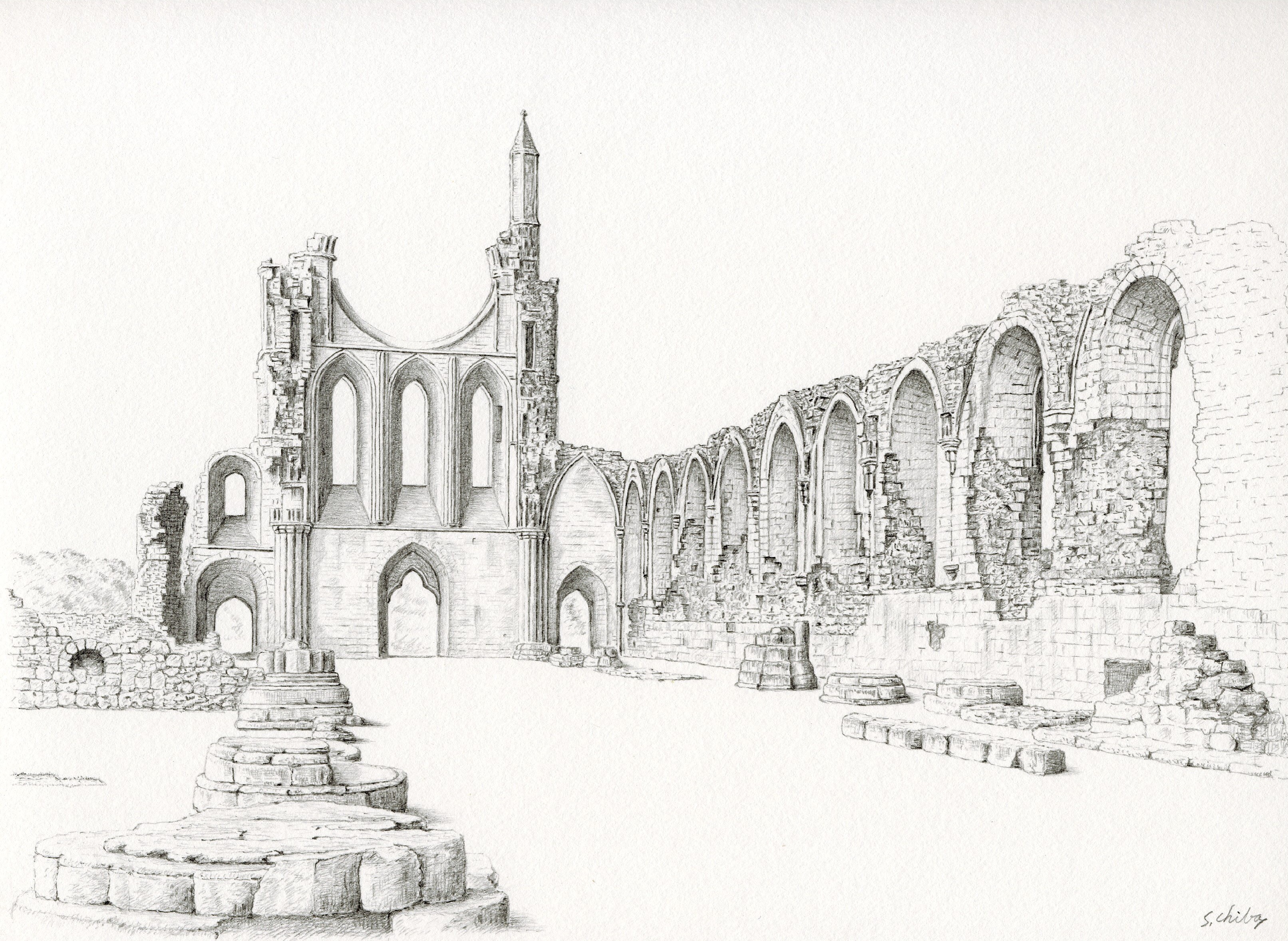 ジョン・セル・コットマンは、崩れた西正面を1809年ごろ水彩画に描いている。ここを訪れると、その絵に描かれたままの姿が、いまも目の前にあらわれる。